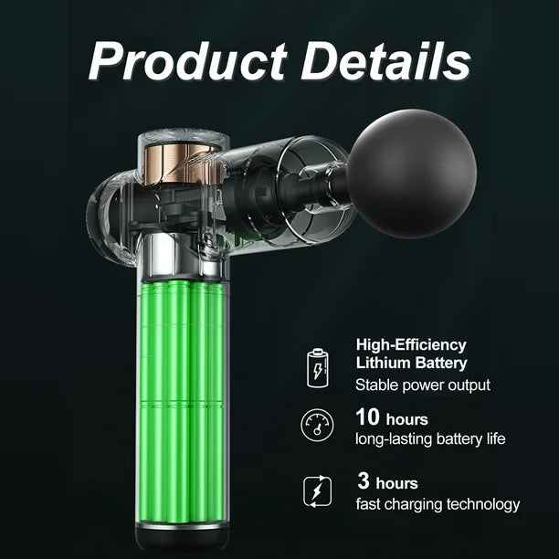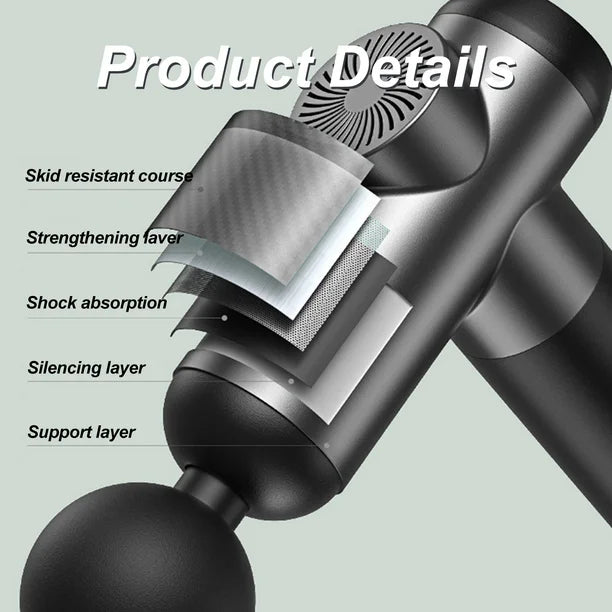 Pistolet de massage musculaire avec 99 niveaux d'intensité et 8 tètes