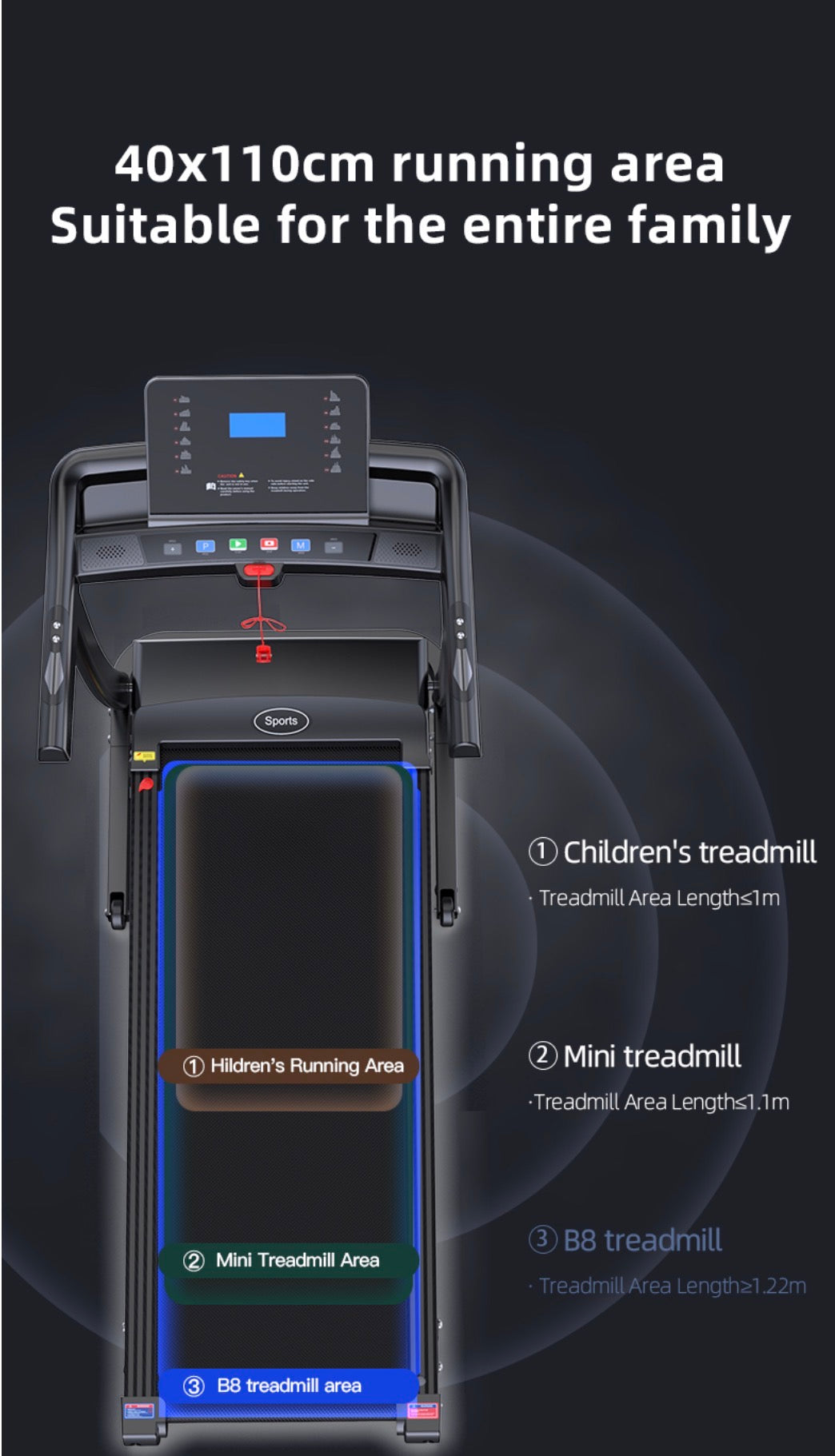 Construction robuste : Conçu pour résister à une utilisation rigoureuse, le tapis roulant supporte un poids maximum d'utilisateur de 120 kg. La zone de course spacieuse de 400*1100 mm assure le confort pendant les entraînements.
