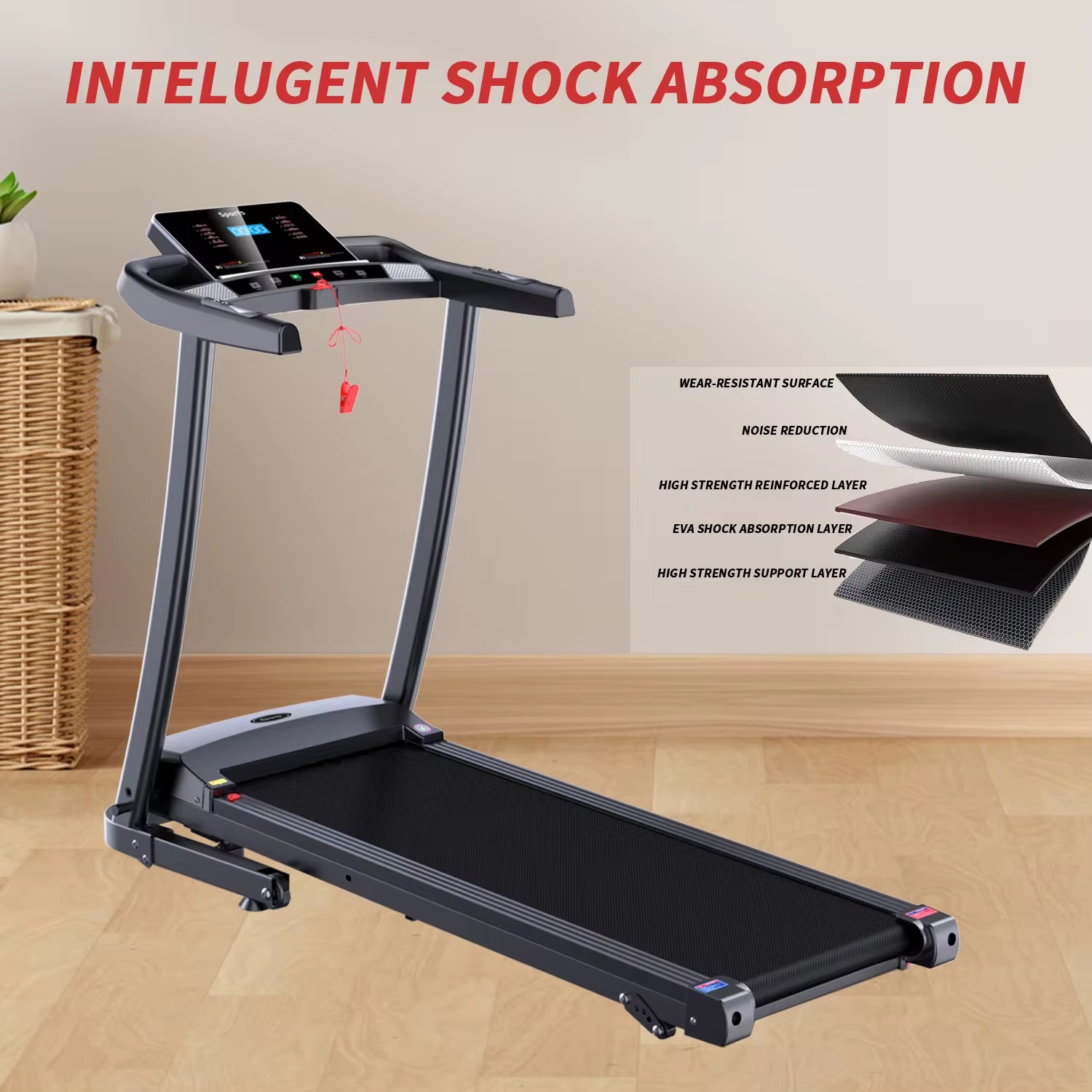 Panneau d'affichage avancé : Doté d'un écran LCD noir de 3 pouces sur un fond bleu, le tapis roulant fournit des informations claires sur la vitesse, la fréquence cardiaque et offre trois modes de comptage pour un suivi détaillé.